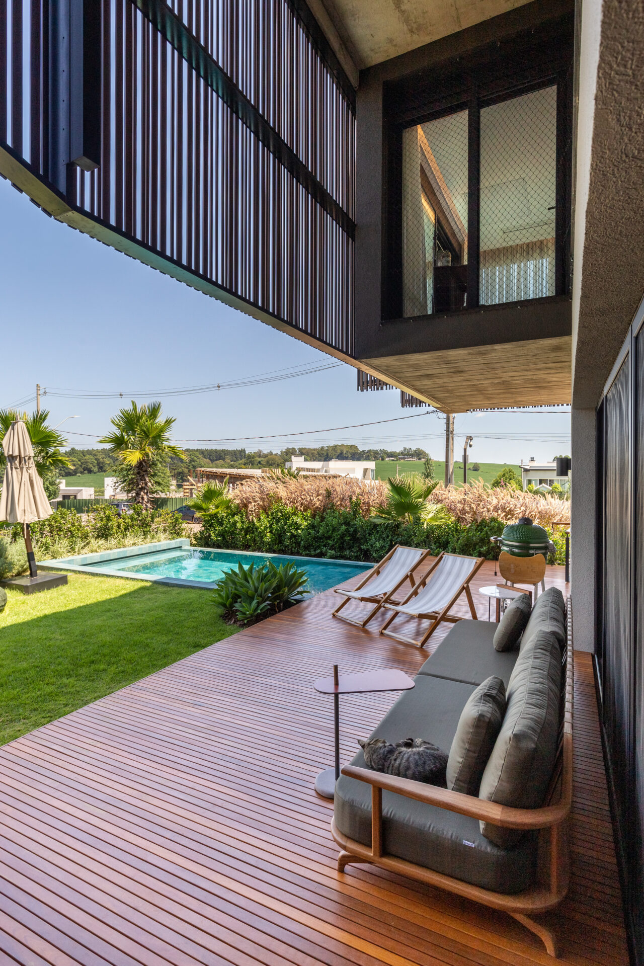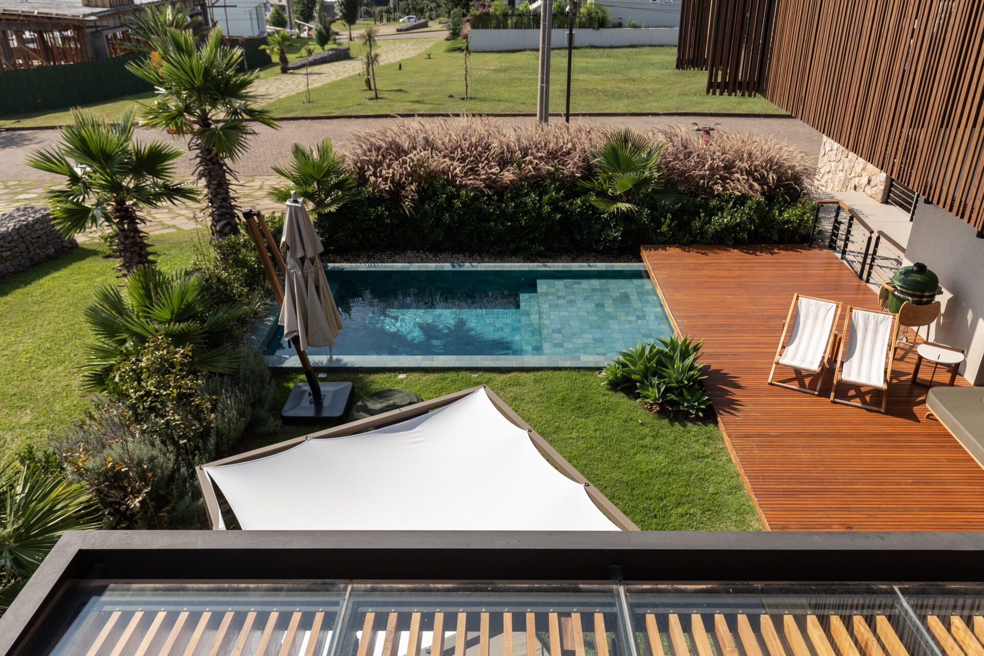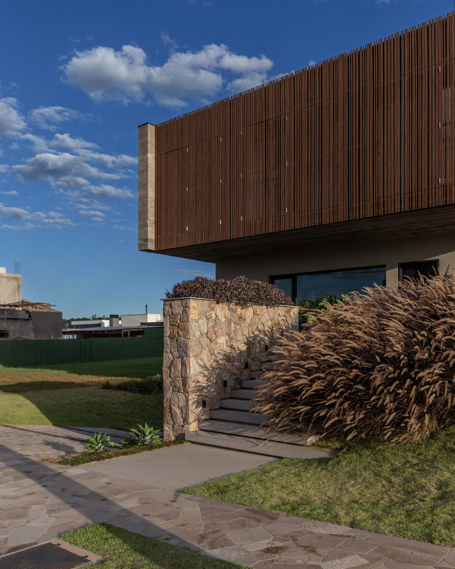 Projeto de jardim da Casa F01 no condomínio La Barra em Passo Fundo - RS. Solicitação de projeto para dar privacidade a casa e segurança para uma família com duas crianças. Espaço de frutiferas, horta, temperos e um cantinho para os pets da família.