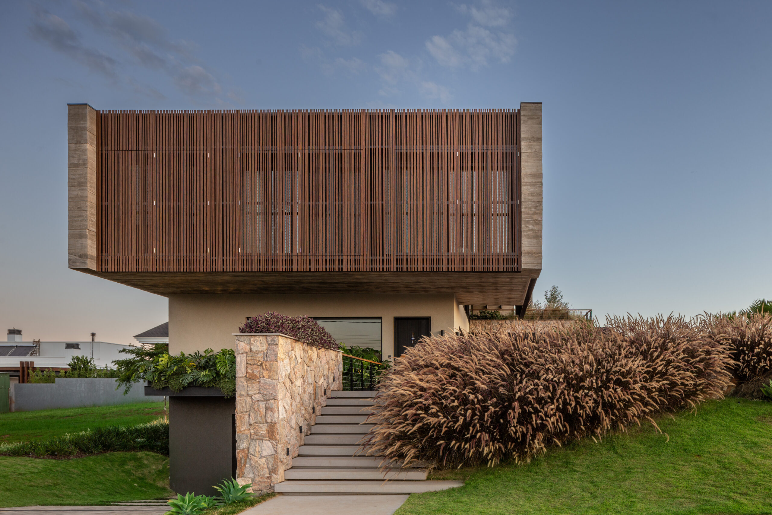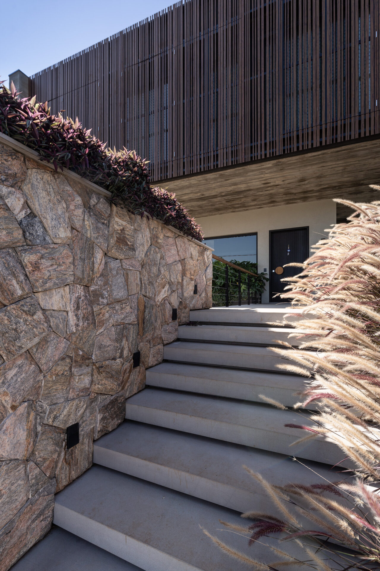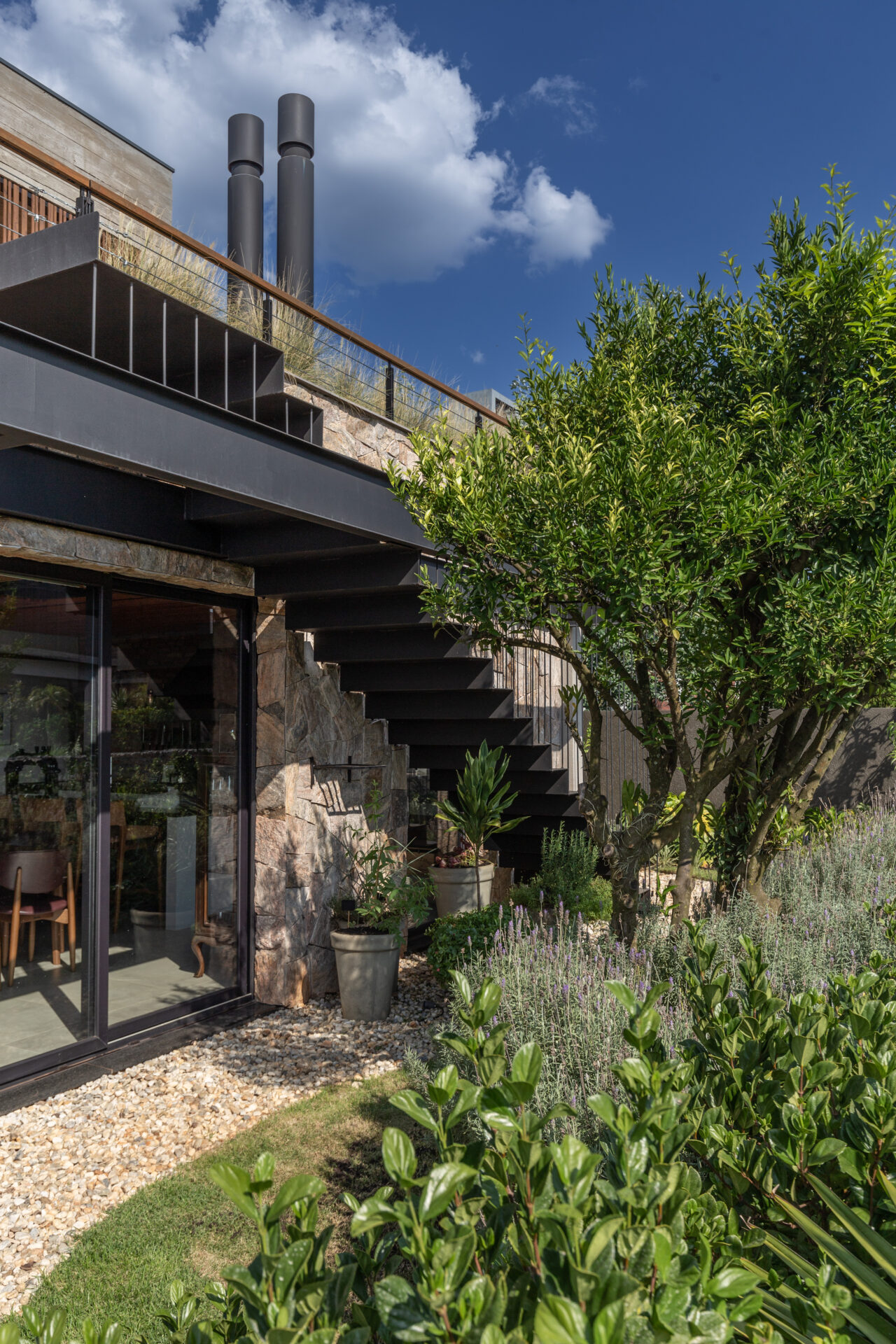 Projeto de jardim da Casa F01 no condomínio La Barra em Passo Fundo - RS. Solicitação de projeto para dar privacidade a casa e segurança para uma família com duas crianças. Espaço de frutiferas, horta, temperos e um cantinho para os pets da família.