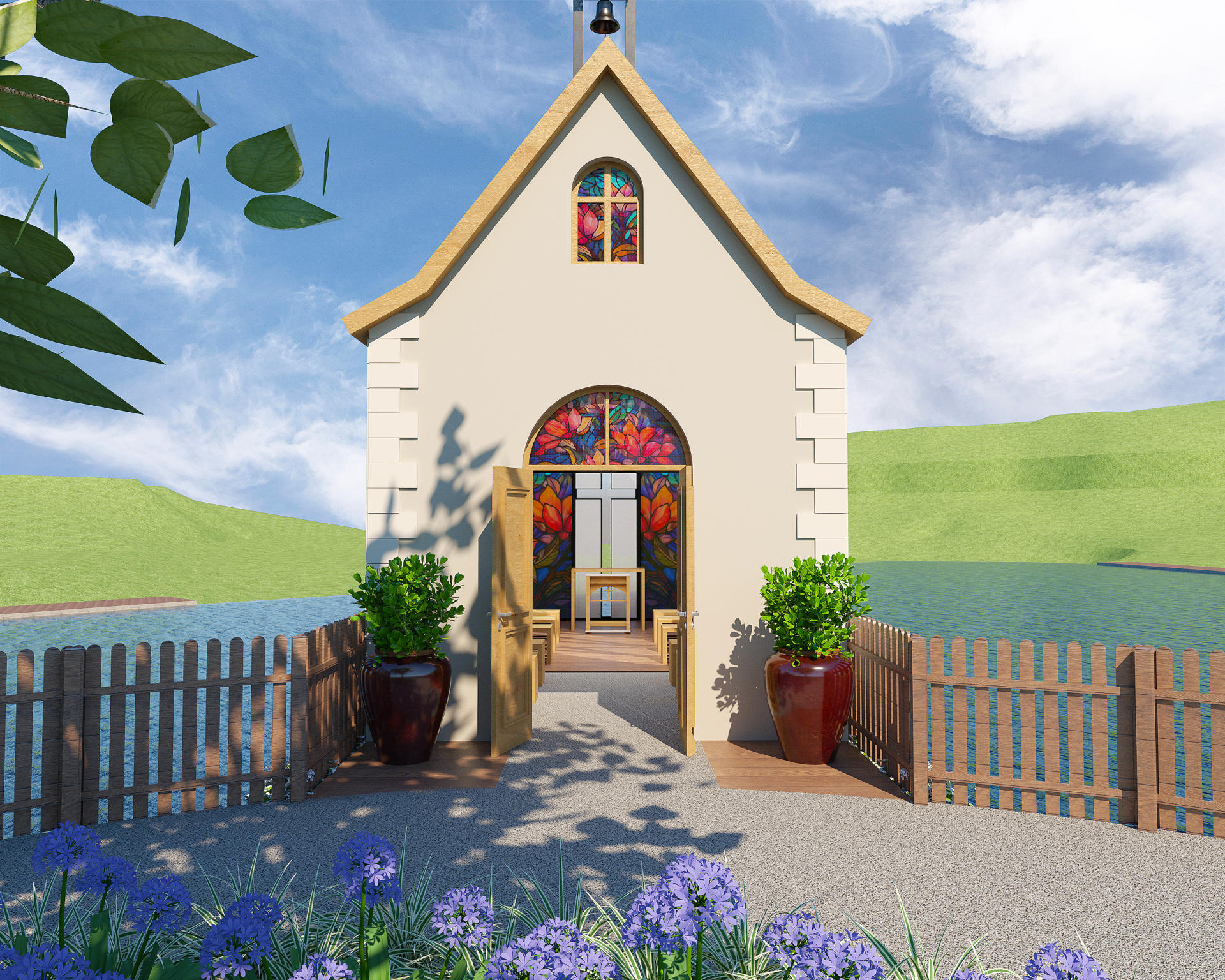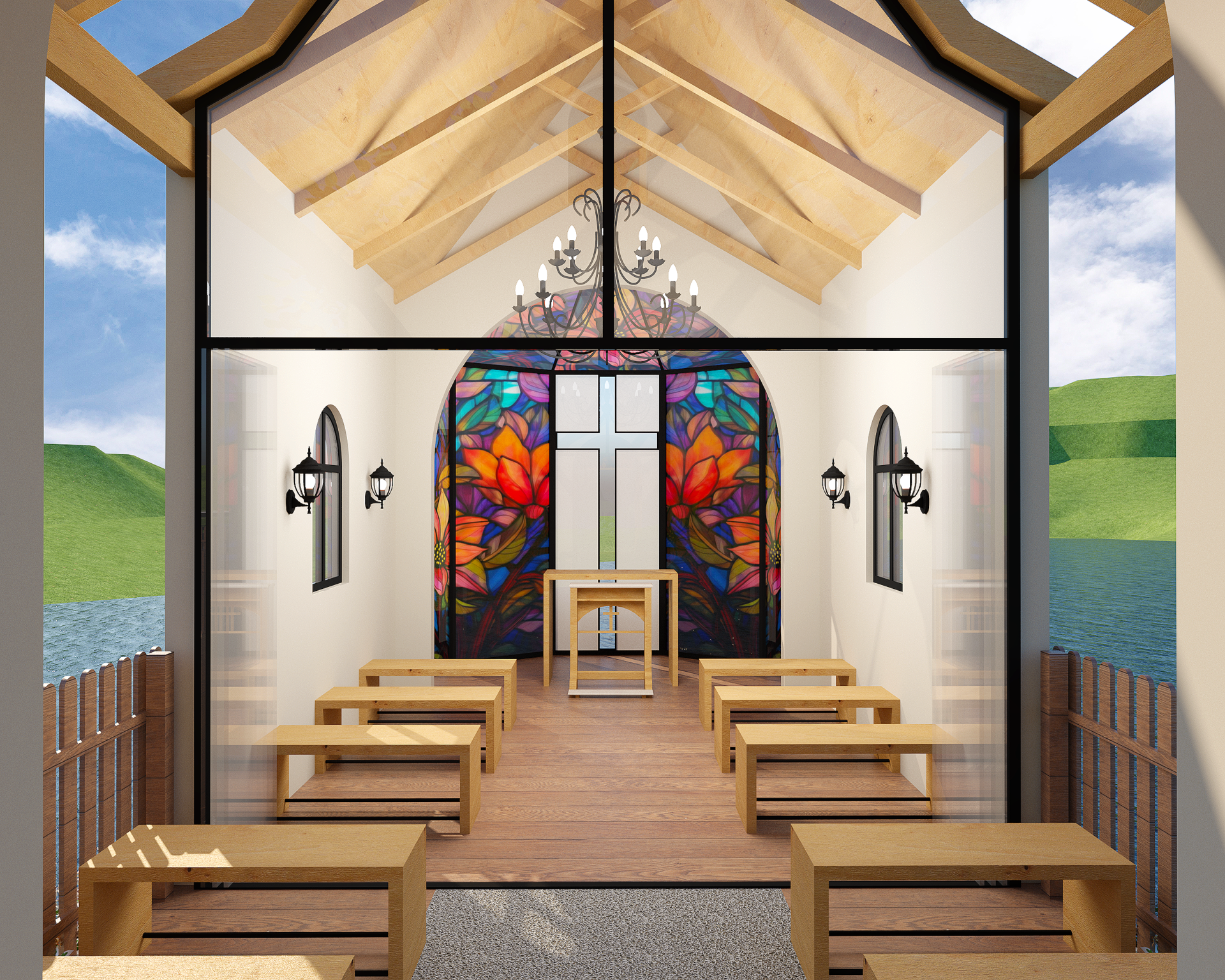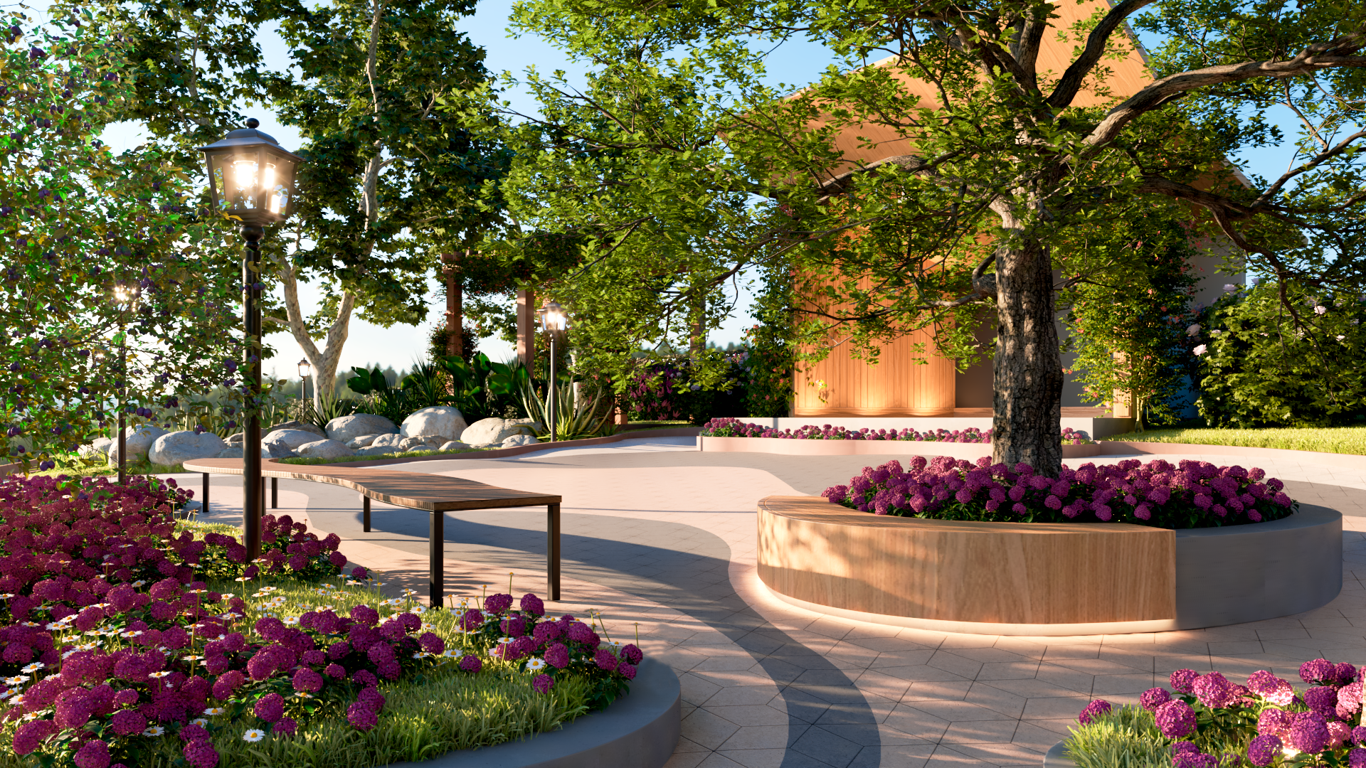 Criação de novo pórtico de acesso, estacionamento para carros, motos e ônibus, capela, palco e praça central para apresentações, readequação dos caminhos e espaços externos para se tornarem acessíveis, reforma de espaços internos, paisagismo de todo parque.